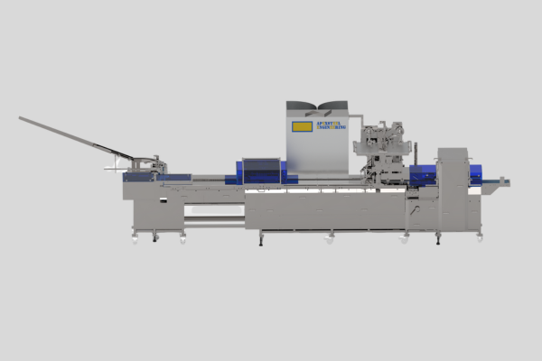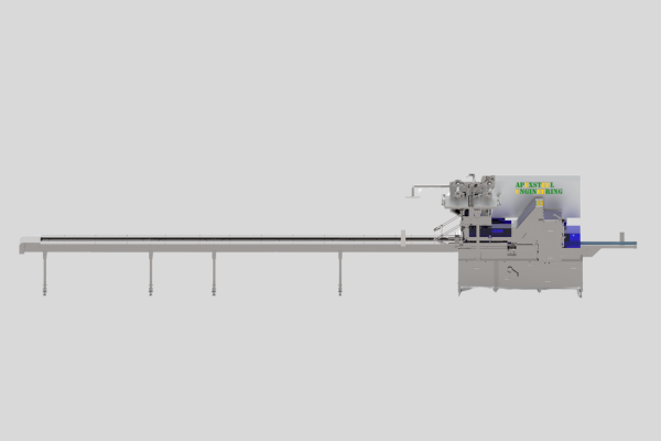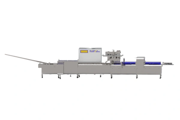 The On-edge pillow pack machine is a high-performance horizontal flow wrapper, integrated with a two-lane auto feeding system specifically engineered for packaging biscuits in a standing-on-edge, single slug format.